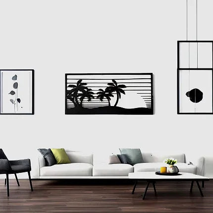 Décoration murale artisanal en bois - Palmier et soleil été