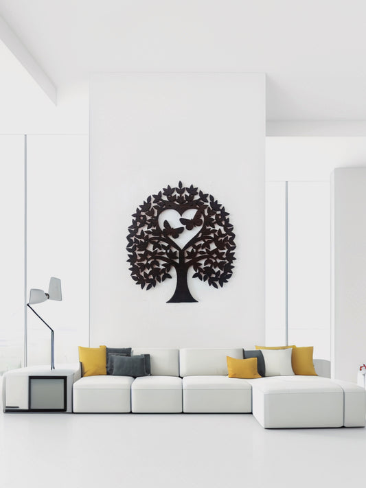 Décoration murale - Arbre de vie en bois coeur et papillons