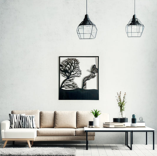 Décoration murale artisanale – Arbre noir et papillon en bois