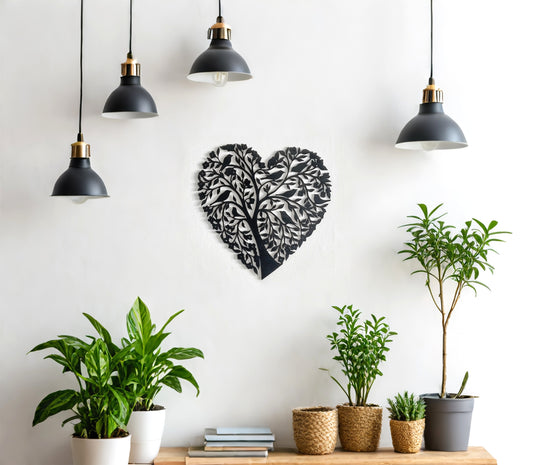 Décoration murale artisanale - Arbre de vie en bois coeur et oiseaux