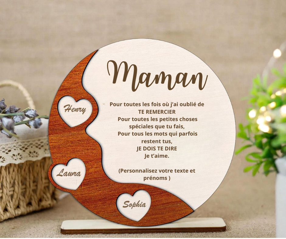 Un cadeau unique et original à offrir pour la fête des mères, cadre en bois avec texte personnalisé.