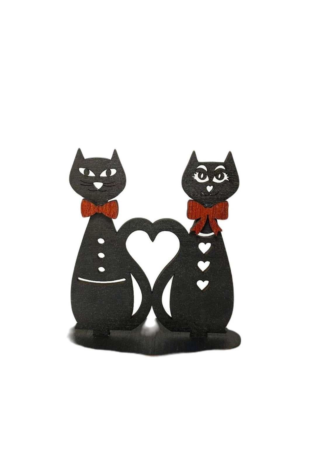 Decorative cats measuring 15 cm x 14 cm in wood.