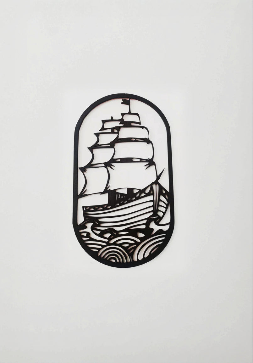 Sign in an oval frame of a sailing ship sailing.