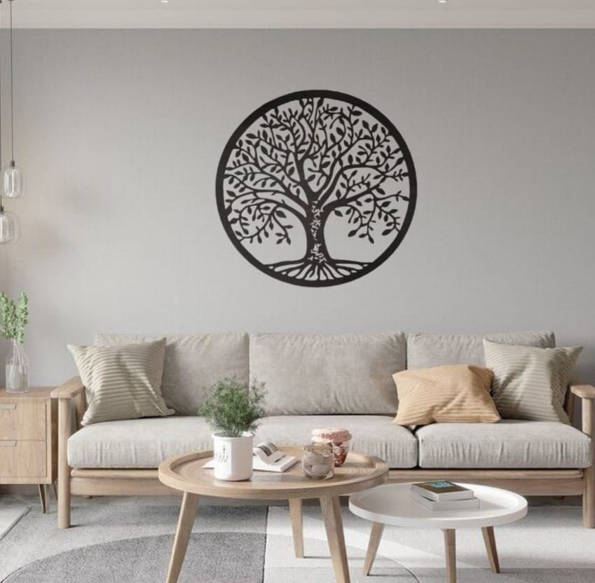 Arbre de vie en bois de diamètre de 90 cm coupé en deux horizontalement, épaisseur de 5mm.