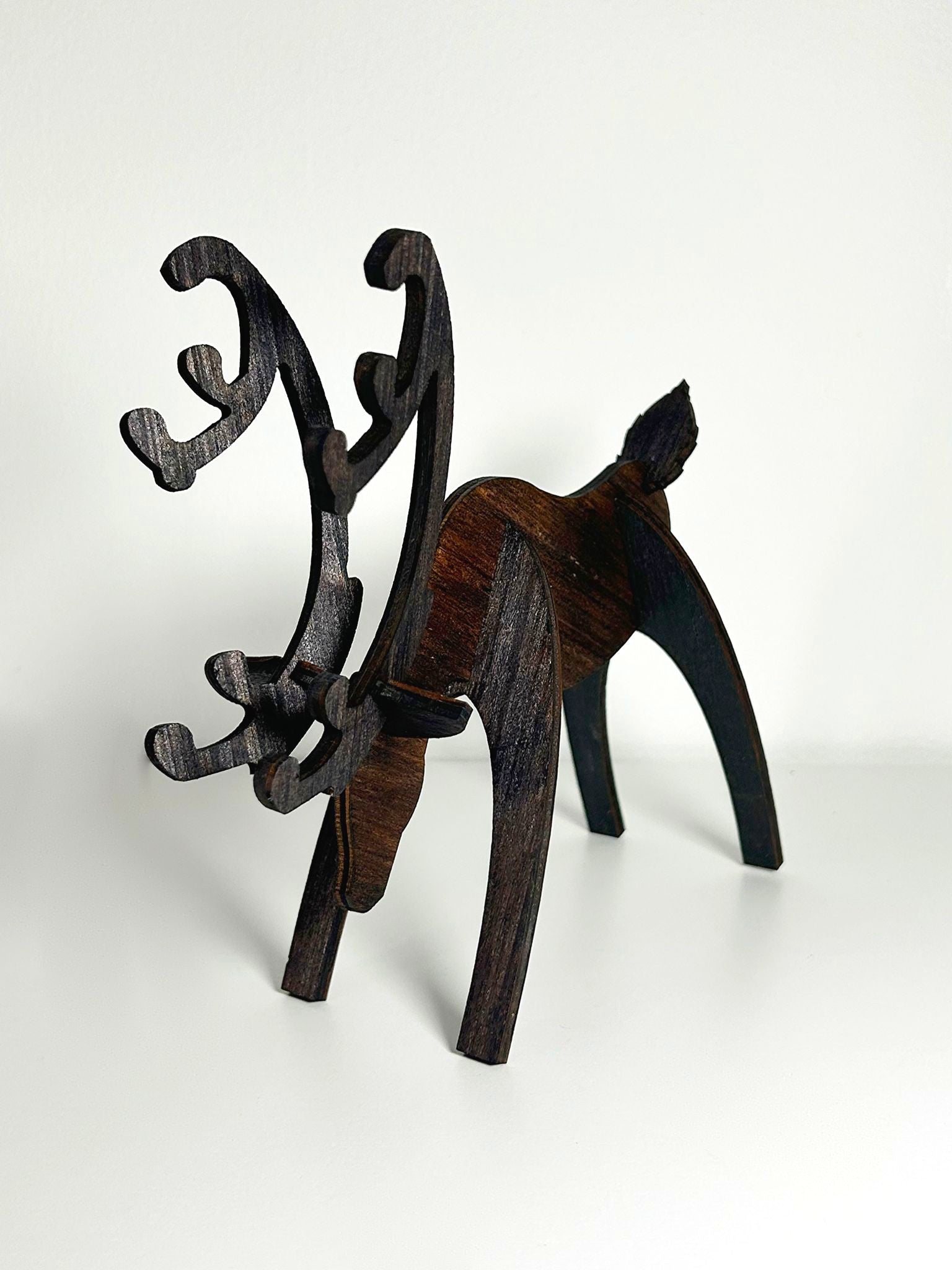 Ce cerf en bois, fabriqué à la main dans notre atelier, allie design raffiné et matériaux naturels. Idéal pour une décoration chaleureuse et élégante, il apporte une touche artisanale authentique à votre intérieur.