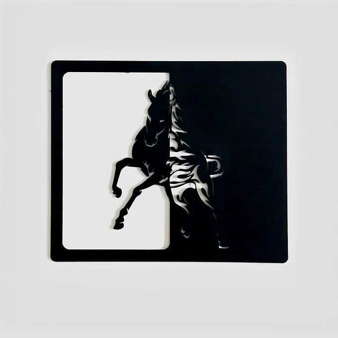 Décoration murale en bois - Cheval bicolore artisanal