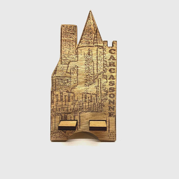 Fabriqué en bois de haute qualité, ce support offre non seulement une fonctionnalité pratique pour votre téléphone, mais également une belle représentation de la Cité médiévale de Carcassonne.