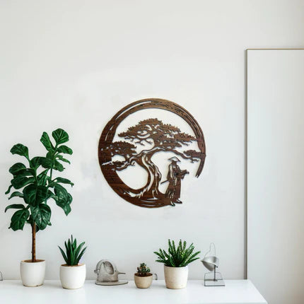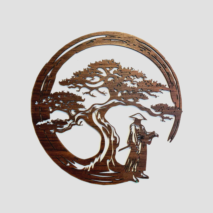 Décoration Murale en Bois – Style Asiatique : Bonsaï et Samouraï