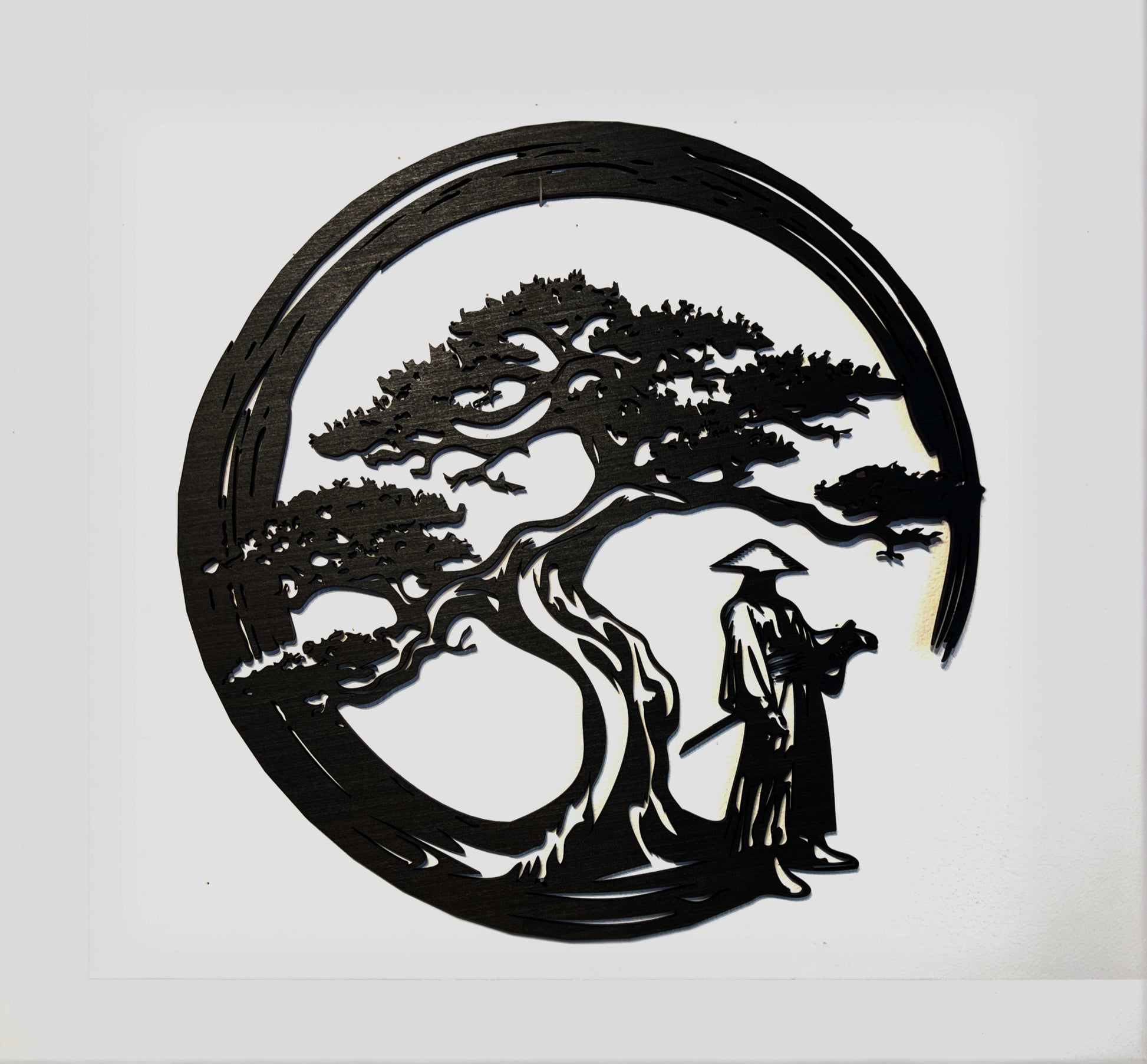 Découvrez notre décoration murale avec un samouraï et bonsaï , c'est une pièce artisanale fabriquée avec soin dans notre atelier à Carcassonne.